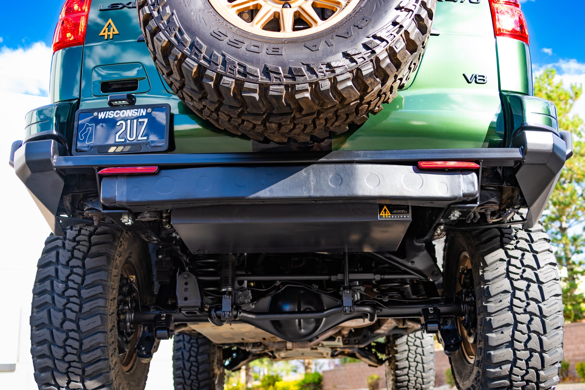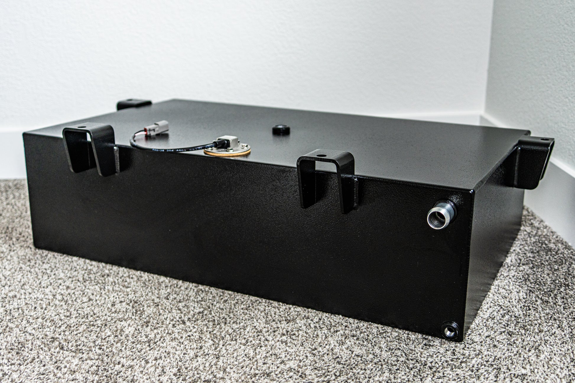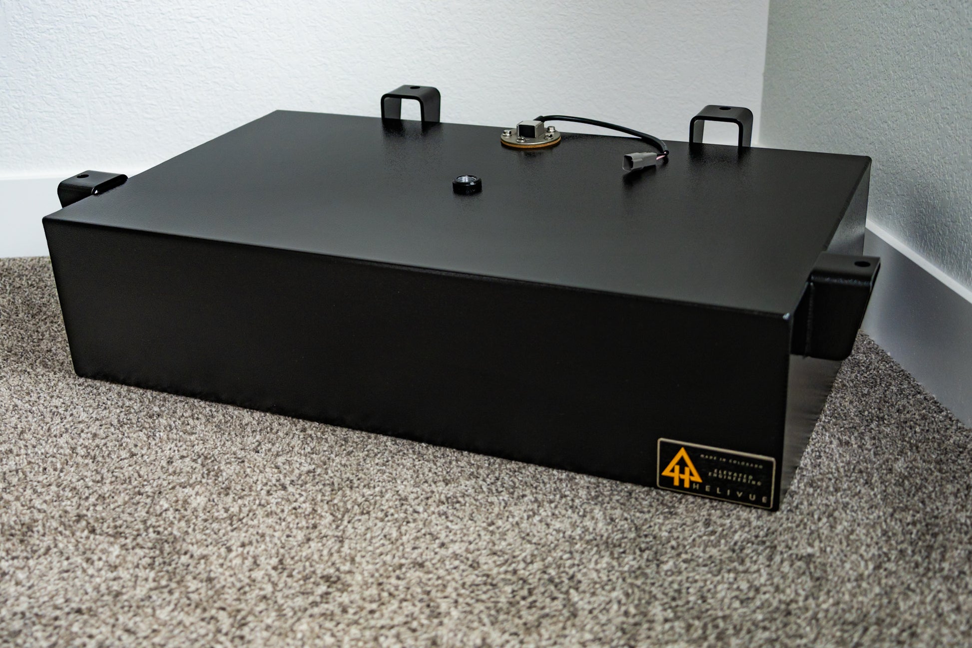 Helivue Design offers a no compromises approach to auxiliary fuel systems for the demands of the Commuter or hard core Overlander. This tank has been thoroughly beat, bashed, landed on and driven from 5,000-13,000 feet regularly without failure. A Lightweight, High clearance, Aluminum 18 gallon auxiliary fuel system that allows you to KEEP your KDSS, Factory Air Ride and your Class 4 receiver hitch. This system is almost completely invisible as it tucks above the bumper line and keeps all factory evap systems in place. The Helivue Design auxiliary fuel tank fills up through your factory filler neck and will simultaneously fill both tanks at once. When you need to transfer fuel we include a high quality programmable Fuel transfer switch/fuel level gauge, quality fuel pump, and stainless steel fuel level sender. Kit includes everything you need to install including quality stainless steel clamps, stainless steel hardware and bung.